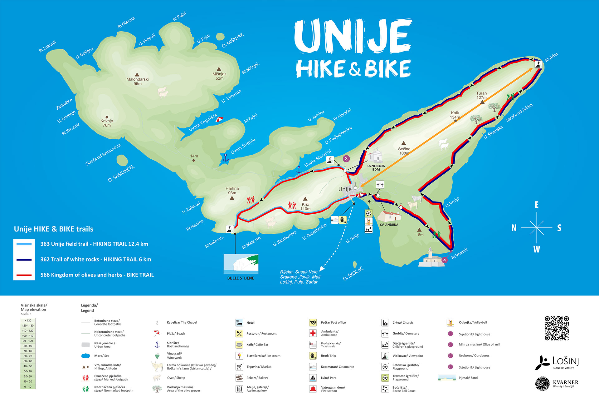 Poti, ki vodijo do razgledov Otok prepredajo urejene pohodniške poti, ki vas vodijo skozi dišeča polja sivke, smilja in oljčnih nasadov.