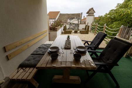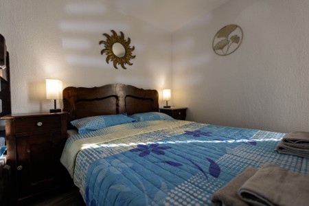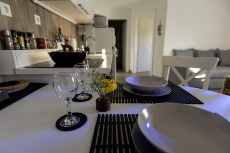 Prostoren družinski apartma z dvema spalnicama in dnevnim prostorom, ki nudi udobje za do 6 oseb. Posebnost sta dve zasebni terasi (pokrita in nepokrita), idealni za sproščanje. Apartma je sodobno opremljen, klimatiziran in ima popolnoma opremljeno kuhinjo ter vse za brezskrben oddih.