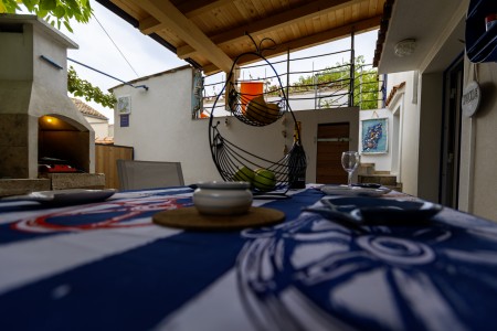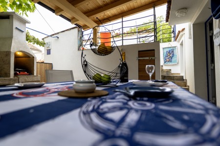Velik in udoben apartma za večje družine ali skupine, ki sprejme do 10 oseb. Ponuja dve spalnici, prostoren dnevni prostor ter dve zasebni terasi. Klimatiziran prostor s stropnimi ventilatorji, dobro opremljena kuhinja in mirna lokacija zagotavljajo prijetno bivanje na otoku Unije.